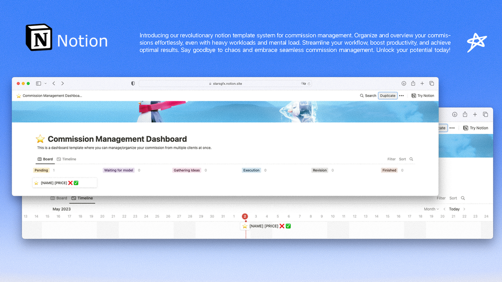 Star's Notion Commission Management Template